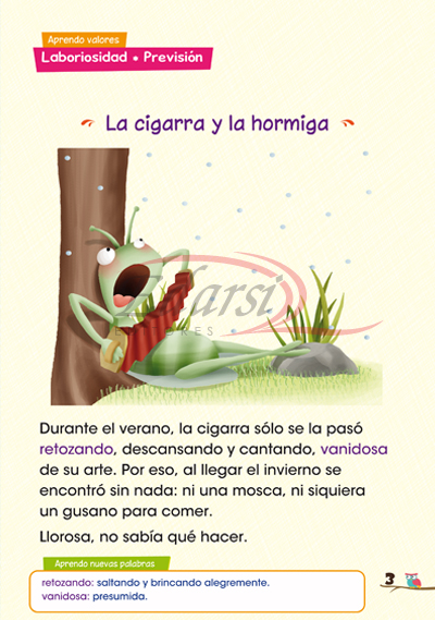 Esta selección de fábulas, de autores muy reconocidos como Esopo y Samaniego, contiene significado de algunas palabras y destaque de valores, en textos cuidadosamente elaborados.