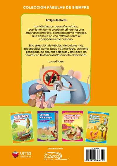 Esta selección de fábulas, de autores muy reconocidos como Esopo y Samaniego, contiene significado de algunas palabras y destaque de valores, en textos cuidadosamente elaborados.